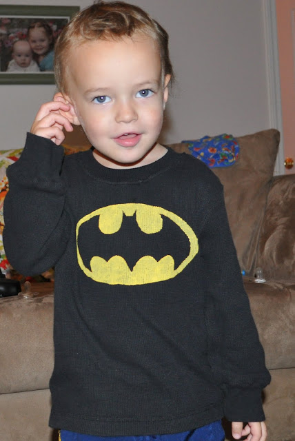 Nolan loves Batman, is an understatement. I refashioned the shirt from my husband's thermal shirt, he recently went through his clothes and I found a few good things. I still have plenty of the black thermal to use for another project. I used the same shirt pattern from the firetruck shirt. It defiantly came out much bigger even though I made the same size. I hope it might shrink up a little after the wash, it seems to have stretch quiet a bit while sewing.